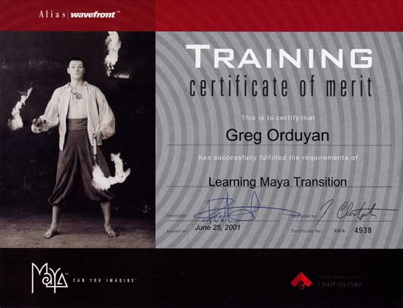 Received this certificate after completing a course by "Alias/wavefront" for expert users